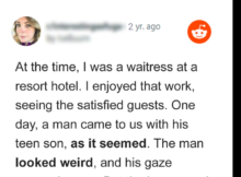 A waitress in a hotel restaurant notices a man and his teenage son and discovers the reason behind the boy’s apparent sadness and disinterest in his food, a