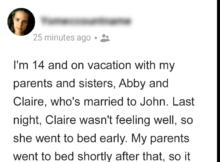 In an astonishing disclosure on Reddit, a 14-year-old girl, referred to as the Original Poster (OP), sought advice after unintentionally overhearing her 18-year-old sister, Abby, engaging in flirtatious