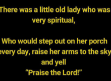 Once upon a time, in a peaceful neighborhood, there lived a little old lady known for her strong spirituality. Every day, without fail, she would step out onto