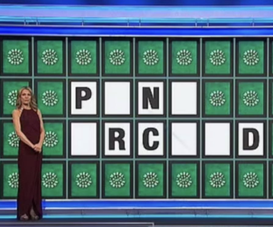 The incomplete phrase “_ N’R _ _ _” was revealed when Megan was led to the puzzle board by host Pat Sajak.